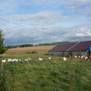 Volailles élevées en liberté avec les céréales de la ferme.